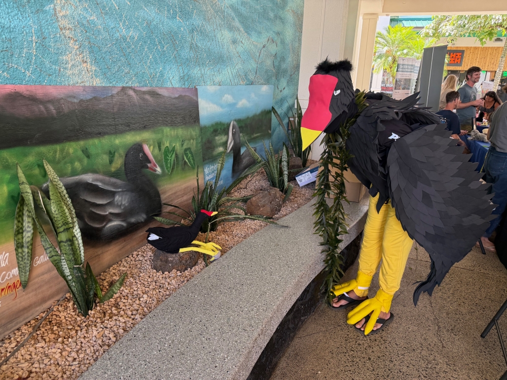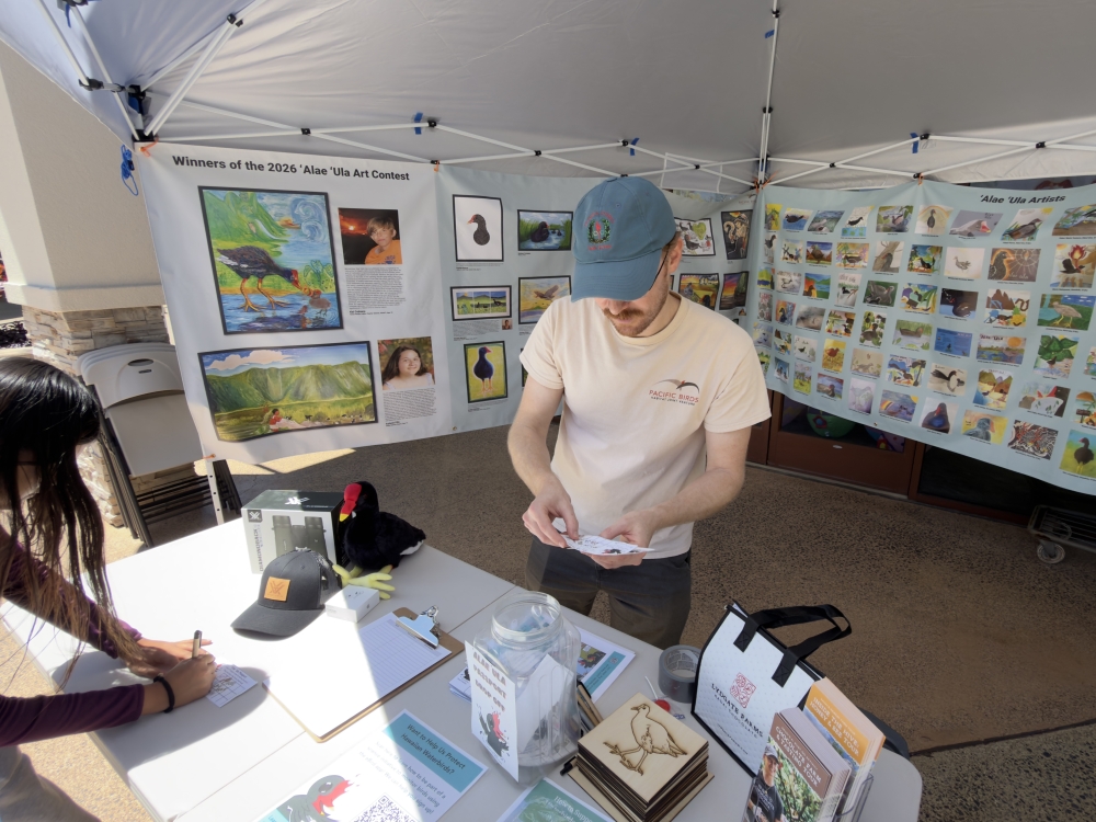 The ʻalae ʻula (Hawaiian common gallinule) is an endangered waterbird that is unique to Hawaiʻi. There are only around 700 left in the world! Over 300 people attended a campaign launch event on April 4, 2026 at Kukui Grove Shopping Center on Kauaʻi. Participants learned how they could help protect this special bird through local art, moʻolelo, and fun facts.