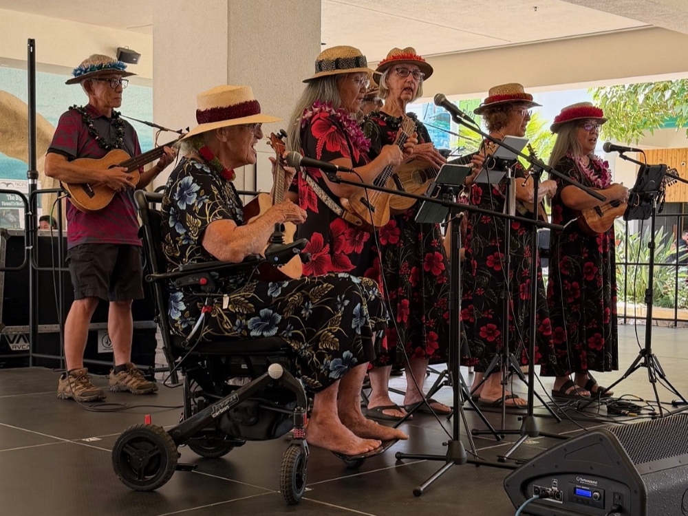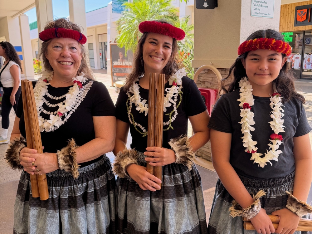 The event began with a blessing, hula, and ʻoli. The first 100 participants were rewarded with Lydgate Farms chocolate. Other activities included crafts at sponsor booths, a pop-up student art show, and display of a block print by artist Holly Kaʻiakapu. There was also a competition to win prizes such as Vortex binoculars, airpods, and ‘alae ‘ula stuffed animals.